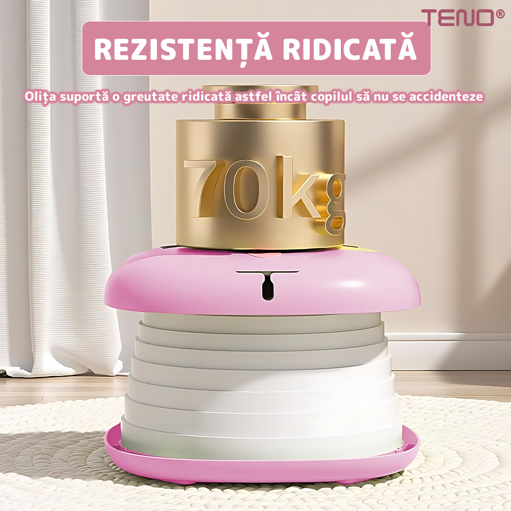 Datorita dimensiunii compacte si greutatii reduse, olita este usor de transportat in geanta, in masina sau in bagajul de calatorie. Este ideala pentru drumetii, vacante sau vizite in afara casei, oferind mereu solutia igienica potrivita la indemana.